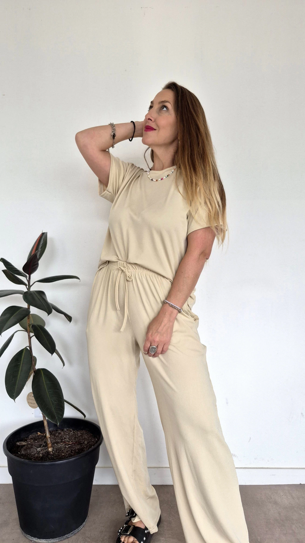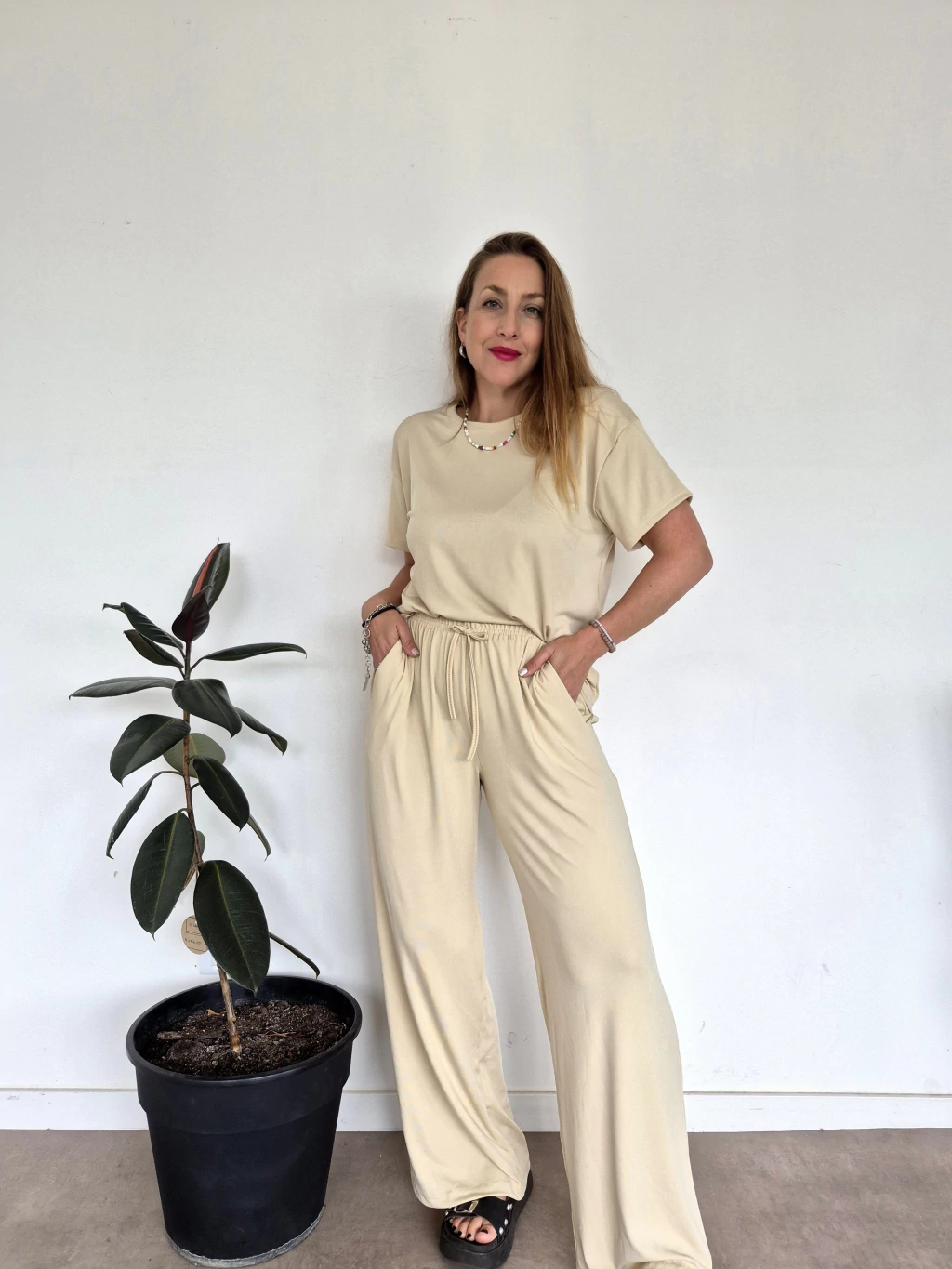 Descubrí nuestro Palazzo Ameli, una prenda diseñada para quienes buscan un equilibrio perfecto entre estilo y confort. Confeccionados con un tejido morley ligero. Estos pantalones cuentan con bolsillos laterales reales que te permitirán llevar tus esenciales con facilidad sin sacrificar la elegancia, y elstico en la cintura para mayor comodidad