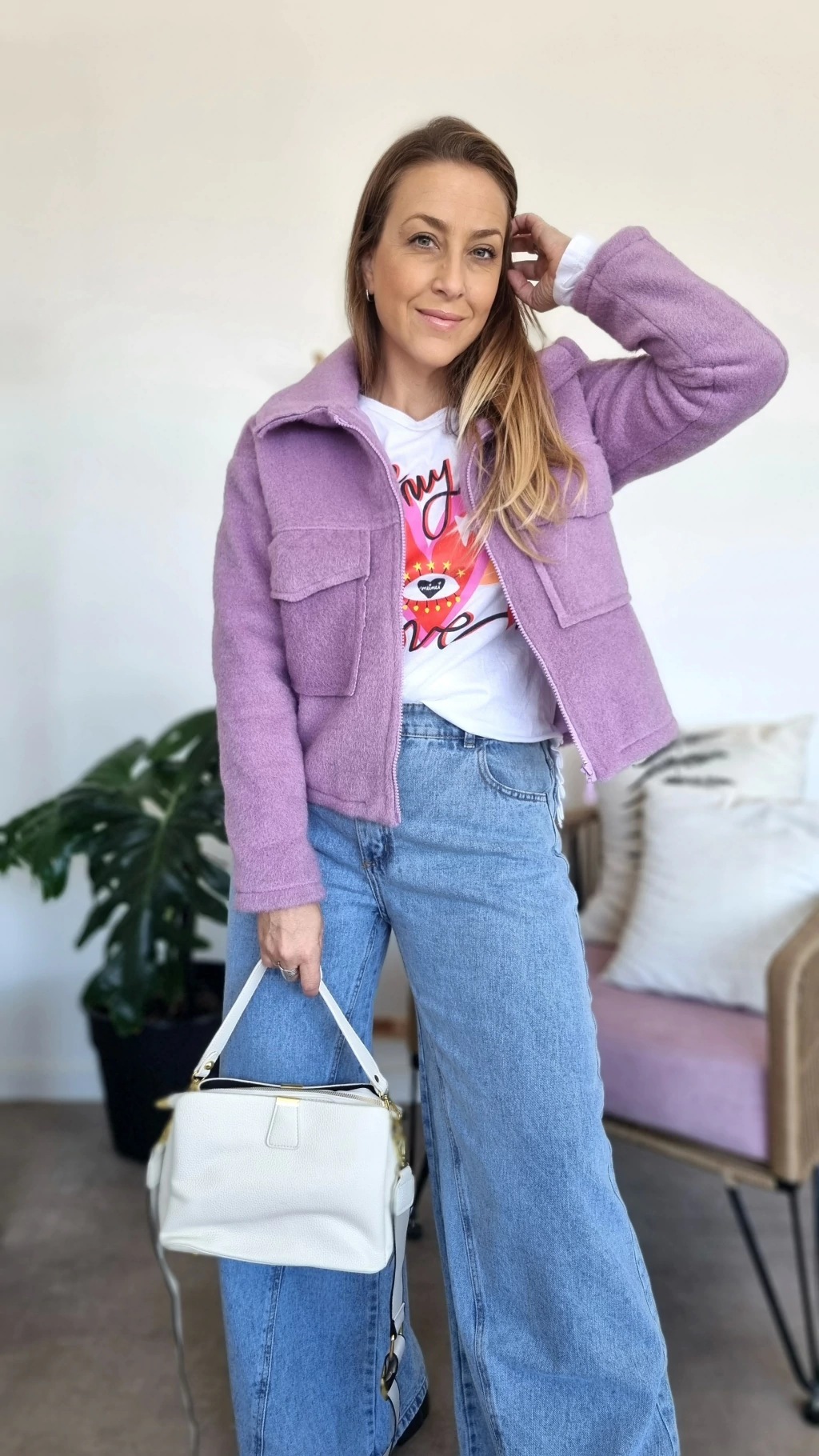 • Con jeans ajustados y zapatillas para un estilo relajado y moderno.