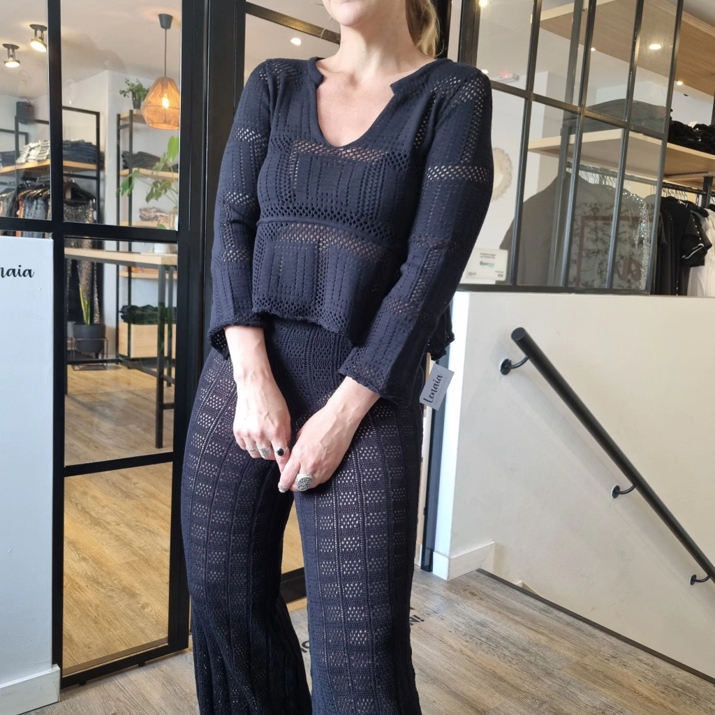 Este elegante sweater caladito es la prenda ideal para complementar tu look en cualquier ocasión. Con su manga larga ancha, te ofrece confort y estilo, mientras que el tejido de lycra viscosa asegura una caída perfecta y un look cómodo.